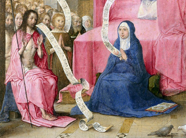 Un seul mystère – un signe grandiose – enveloppe de sa proximité corporelle la vierge Marie et la jeune femme qui engage ici sa liberté : celui de la vie, déjà donnée dans la naissance et le baptême, et maintenant transfigurée dans la gloire des humbles gestes quotidiens ; celui donc d’une maternité plus haute que le mal ou la mort.