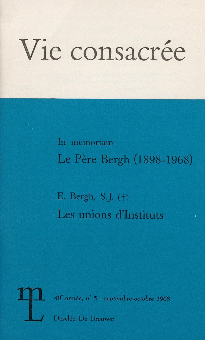 [23] Fusion de Congrégations, dans R.C.R., 1955, 164-170. Dans le numéro de Vie consacrée où paraît cette notice, l’on trouvera un article posthume du P. Bergh, resté inachevé : Les Unions d’instituts, où il prolonge et élargit ce qu’il avait écrit en 1955.