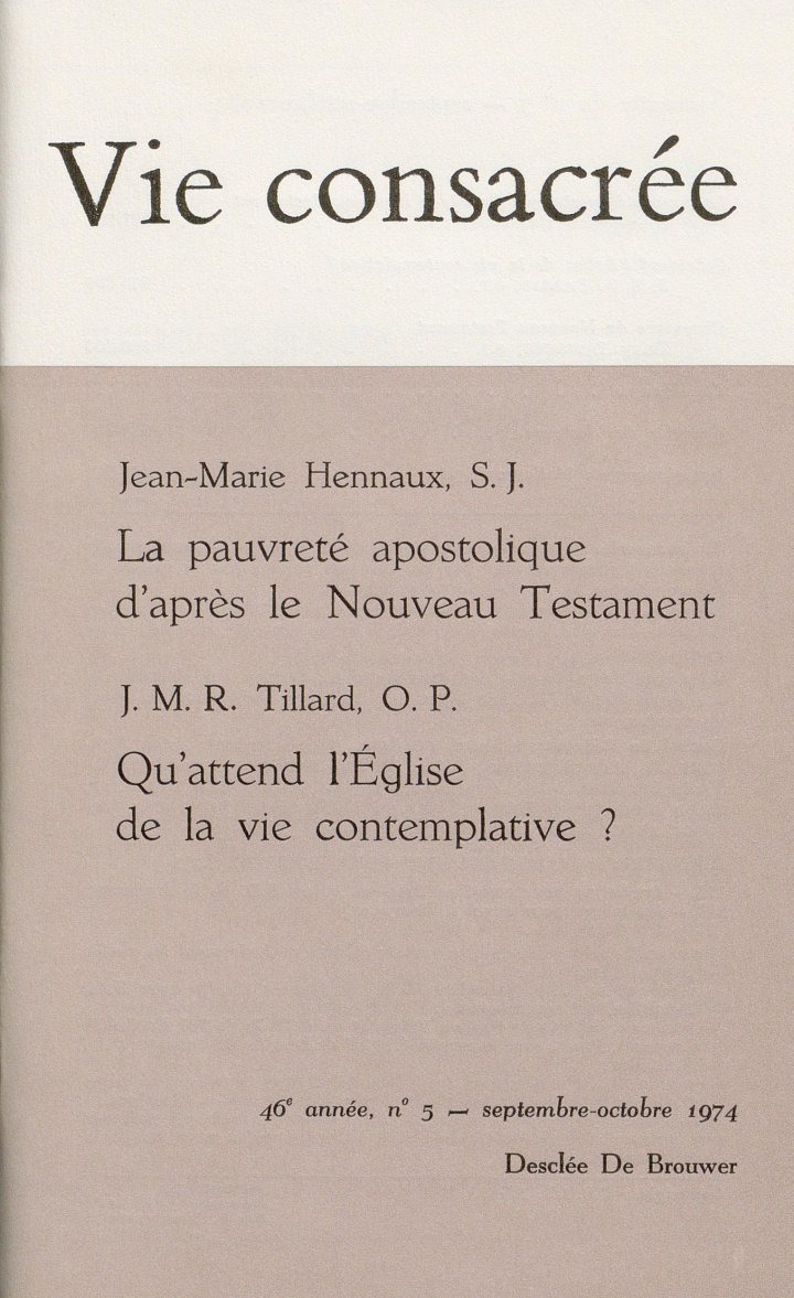 Vous trouverez ci-dessous le sommaire des articles du numéro 1974-5 de Vie Consacrée.