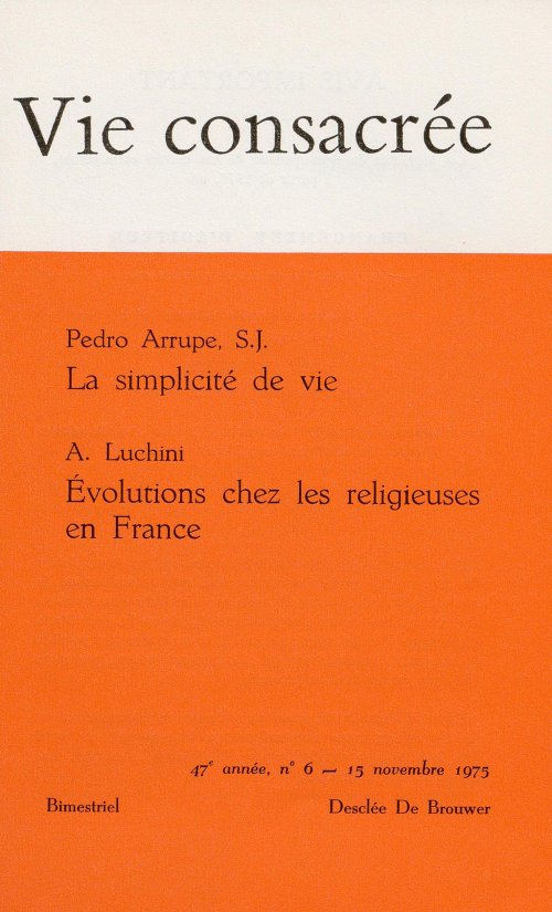 Vous trouverez ci-dessous le sommaire des articles du numéro 1975-5 de Vie Consacrée.