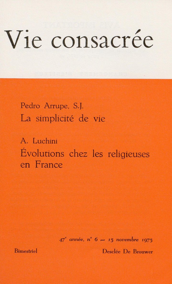 Conférence donnée à Gênes, le 29 décembre 1973, aux membres de la Province S.J. de Turin, réunis en une session de trois jours en vue de la Congrégation générale. Nous la publions dans la traduction établie par la Maison Provinciale de Montréal, dans l’espoir que ces réflexions, adressées à des Jésuites à propos de leurs problèmes, puissent aider d’autres religieux à clarifier les leurs. Nous remercions le Père Arrupe de nous y avoir autorisés.