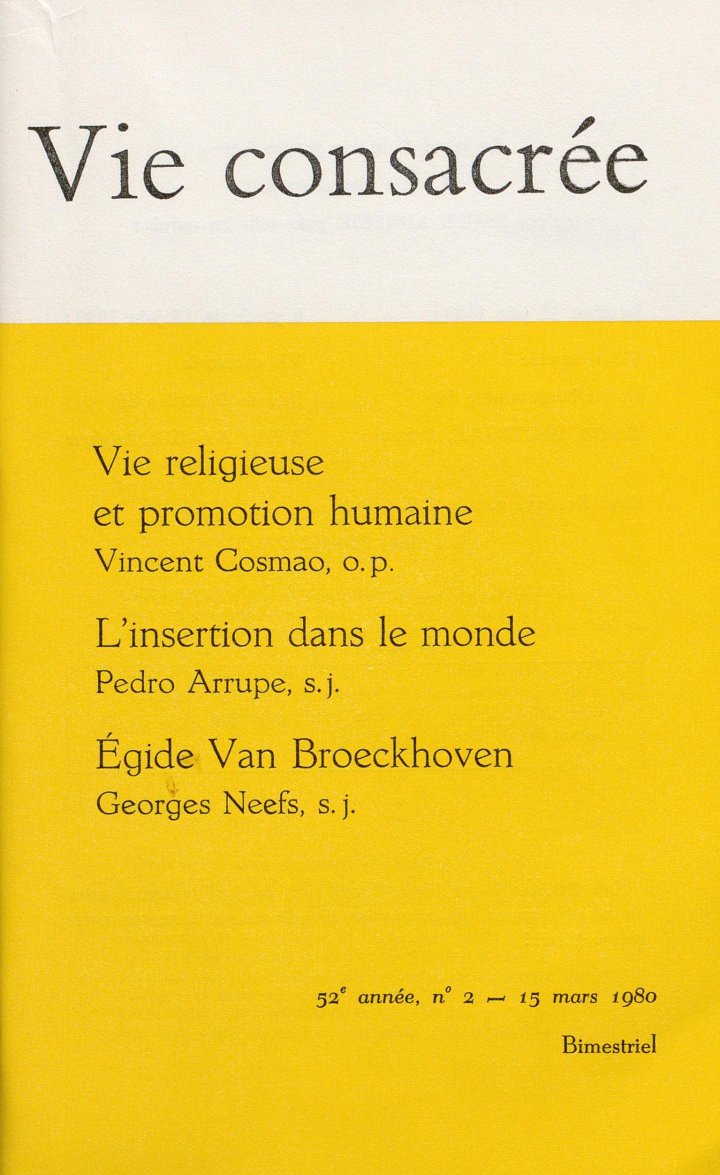 [2] G. Neefs, s.j., « Égide Van Broeckhoven : Prier au cœur du monde », Vie consacrée, 46 (1974), 321-337.