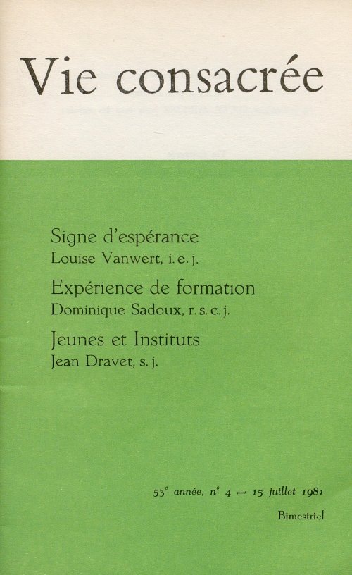 Vous trouverez ci-dessous le sommaire des articles du numéro 1981-5 de Vie Consacrée.