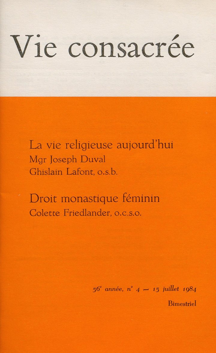 | P. 230-239 | Le droit monastique féminin en 1983, Colette Friedlander, o.c.s.o.
