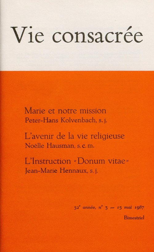 Vous trouverez ci-dessous le sommaire des articles du numéro 1987-4 de Vie Consacrée.