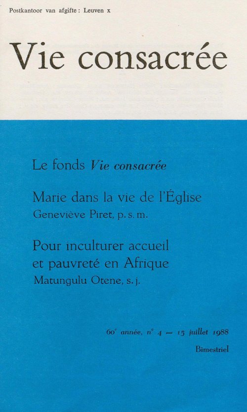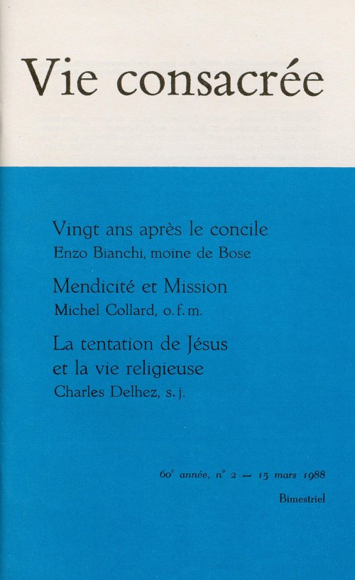 Vous trouverez ci-dessous le sommaire des articles du numéro 1988-6 de Vie Consacrée.