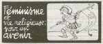 De longs jours, j’ai laissé ces deux expressions féminisme et vie religieuse se fréquenter doucement dans mon cœur avant de sentir poindre quelques pousses neuves de réflexion. J’avoue que cette fréquentation a connu des heures de regards chargés de lassitude puis de grimaces réciproques avant de m’offrir des moments de réconciliation et enfin d’alliance.
