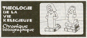Les ouvrages reçus cette année se divisent en deux groupes : le premier traite de la vie consacrée sous son aspect doctrinal ; le second la considère dans sa mise en pratique, collective ou individuelle.
