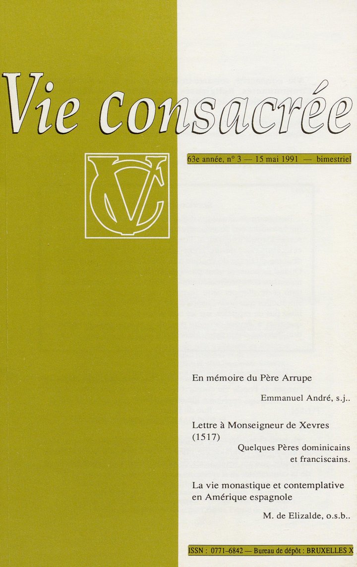 Vous trouverez ci-dessous le sommaire des articles du numéro 1991-3 de Vie Consacrée.