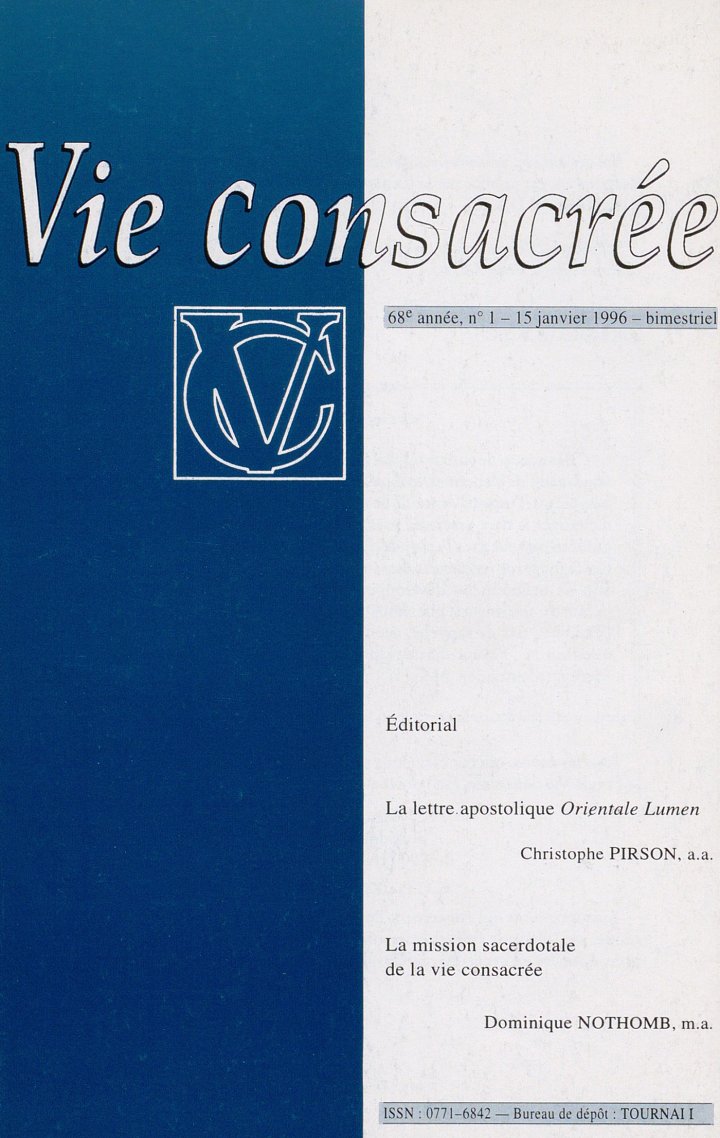 Si une des insistances du dernier Synode a été de nous inviter à mieux cerner le lien de l’être et de l’agir dans la mission de la vie consacrée, il était sûrement utile d’exposer les rapports existant entre les trois “fonctions” (munera) du sacerdoce des fidèles tel que celui-ci est mis en œuvre de manière particulière par la “vie consacrée”. Sans minimiser l’urgence de la parole et des actes prophétiques que l’on évoque souvent à propos de l’existence “risquée” des consacrés, l’auteur, ici, ouvre une perspective complémentaire qu’il est bon que nous gardions présente à la conscience vive de ce qu’“est” notre vie en son fond le plus intime : une union à Jésus s’offrant au Père en Eucharistie à laquelle son Esprit nous conjoint. De là tout découle.