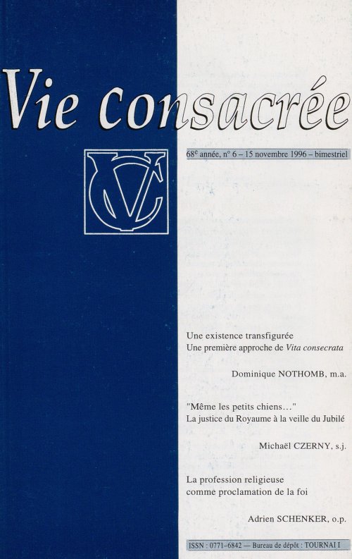 Vous trouverez ci-dessous le sommaire des articles du numéro 1996-4 de Vie Consacrée.