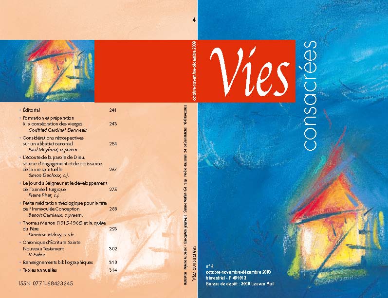 Éditorial | Notre année éditoriale s’est ouverte par une méditation de l’Immaculée Conception de la Vierge Marie du regretté Père A. Chapelle s.j., nous indiquant comment « Dieu a réussi » ; elle se termine à présent par la considération du même mystère, sous la plume du Père B. Carniaux, qui montre comment « le ‘second Adam’ et la ‘seconde Ève’ se révèlent être les premiers depuis les origines ». Nos cheminements quotidiens s’inscrivent ainsi dans l’immense parabole qui va des commencements aux (...) Voir le numéro