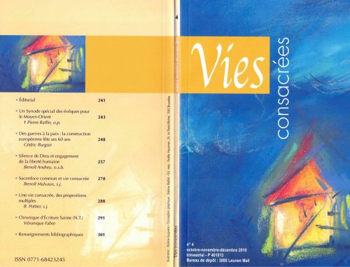 Éditorial | Jusqu’à ce jour, « l’Église avance dans son pèlerinage à travers les persécutions du monde et les consolations de Dieu », affirmait saint Augustin, dans la Cité de Dieu (18, 51 ; cf. LG 8). Au terme d’une année éditoriale bien remplie (on s’en apercevra en jetant un coup d’œil sur la table analytique), nous voici déjà au cœur de la célébration du Synode pour le Moyen-Orient, que nous présente Mgr Pierre Raffin, tandis que le P. Cédric Burgun, prêtre du même diocèse, fait écho au Colloque (...) Voir le numéro