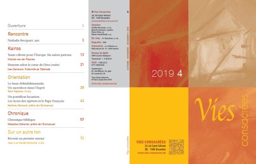 Ouverture | C’est le Synode pour l’Amazonie et nous sommes tous impliqués ! Ce « Synode d’urgence », fils de Laudato si’, en continuité directe avec le Synode des jeunes, se tient à Rome du 6 au 27 octobre. Tous les documents utiles se trouvent en français sur le site du Vatican qui lui est dédié. L’Union internationale des Supérieures générales a ouvert un blog pour faire entendre la voix des religieuses durant l’assemblée et demandé à chaque communauté d’établir chez elle « la tente synodale », pour (...) Voir le numéro
