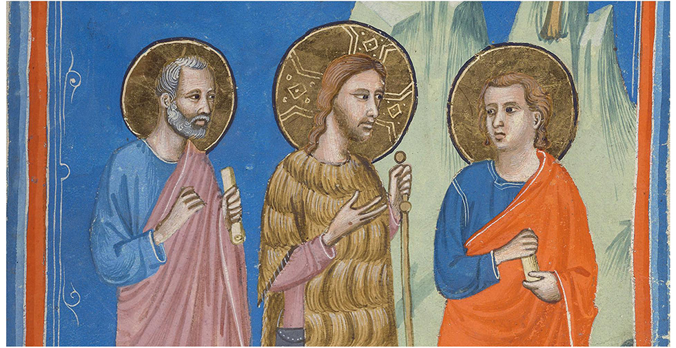Avec le Ressuscité sur le chemin d’Emmaüs, Pacino di Bonaguida, Florence, ca 1320 (Pierpont Morgan Library, manuscrit M. 643, f° 15r°) - DR